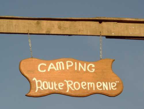 foto: bord bij de ingang van camping Route Roemenië in Minis