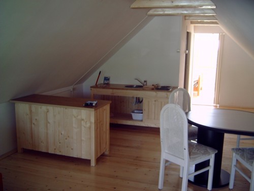 rechterkant met een terrasje achter het hek een grindweg in (tegenover huisnummer